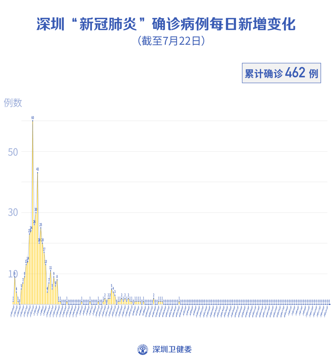 截至7月22日24時,深圳累計報告新冠肺炎病例462例。
