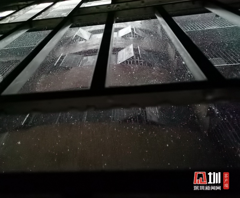 大雨如注,福田區蓮花北社區的泳池蒙上一層水霧,看不清楚。(記者張玲 攝)
