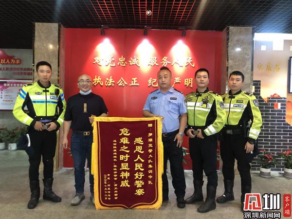 10月14日上午11時許,劉先生帶著錦旗來到羅湖交警大隊。“感謝交警大隊機訓中隊陳展廷組長、黎警官、黃警官對我的幫助,今天專程過來感謝你們。”劉先生激動地說。