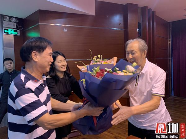 演講結束后,有不少居民現場分享自己的奮斗故事與對深圳的熱愛。在舞臺的另一邊有兩位聽眾上臺給蔣開儒老師送花。“《春天的故事》的故事一直激勵著我們,我是1984年來的深圳,看著深圳的起步和發展。今天親臨現場聽到蔣老師(蔣開儒)分享的人生經歷,感覺特別有共鳴。相信春天的故事會延續下去,深圳將再創輝煌。”桂木園老年人協會會長徐紅光情緒激動地說道。