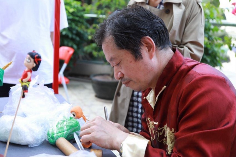 另一方面,活動還設有非遺集市,《王氏面塑》《楊氏中國結》《田氏剪紙》《聶氏麥稈畫》《臉譜面具繪畫》《糖畫》等一批傳統藝術項目傳承人來到現場,亮出“看家本領”制作藝術品,吸引不少市民到場學藝。