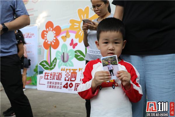 “我是在‘i羅湖’公眾號上看到消息,說是周日梧桐綠道會舉辦攝影活動,于是帶著家人來游玩拍照”。羅湖市民周先生說。這里有深圳和綠道元素的標語、頭箍、合影異形牌等道具,拍照打卡很有紀念意義,而且還有專業的攝影師和智能照片打印機。“我們一家人很久沒有合影了”拿著剛打印出來的照片,周先生看著家人笑得很開心。