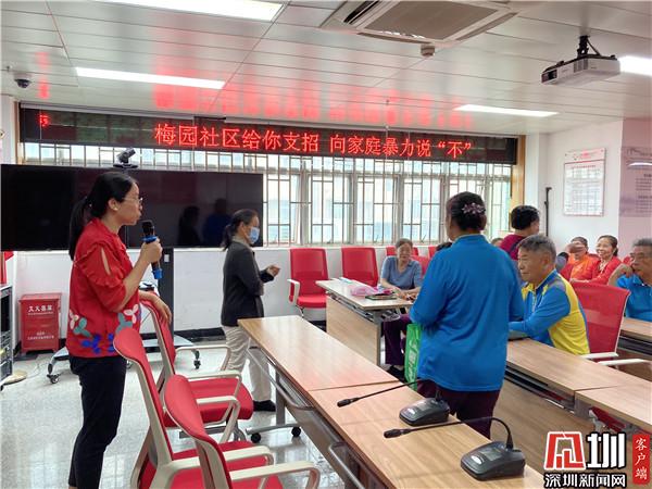 見圳客戶端·深圳新聞網11月25日訊(記者 劉嘉敏 通訊員 梁嘉麗 張亮亮)每年的11月25日也被稱為“國際消除家庭暴力日”,隨著時代的發展,大家對家暴的認知,不只是普遍認知的身體虐待,更多的是關注,情感的冷遇和言語的辱罵所帶來的傷害。怎樣才是對待親人的合適方式?學會向家庭暴力說“不”,社工給您支招。11月24日下午,在深圳羅湖區清水河街道梅園社區黨群服務中心開展了一場“反家暴”宣講活動,預防和制止家庭暴力,保護家庭成員的合法權益。