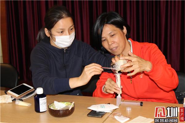 據了解,劉燦輝浸染芳香研究十幾年,有著豐富的芳療經驗。在課堂上,劉燦輝耐心地引導社區婦女在芳香中忘掉壓力和煩惱,體驗愉快,開拓出精神力量。20位社區婦女還在老師的帶領下,動手制作潤手霜。大家相互幫助,彼此配合,經過調試、攪拌、加熱、瓶裝等過程,每位學員都擁有了一支專屬于自己的潤手霜。