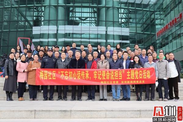 見圳客戶端·深圳新聞網12月18日訊(記者 彭桂紅 劉晨 通訊員 陳秋珊 紀楚苗)12月17日下午,深圳市羅湖區清水河街道梅園社區黨委組織社區各黨支部書記、老年人協會黨支部黨員一行30余人,來到深圳報業集團參觀交流黨建工作。自2020年8月至2021年底,深圳新聞網黨總支部掛點聯系羅湖區清水河街道梅園社區,雙方結對共建,當天,雙方在深圳報業集團開展了一場“不忘初心話傳承,牢記使命說擔當”主題黨日活動。市紀委監委駐報業集團紀檢監察組組長、報業集團黨組成員陳鵬出席活動。