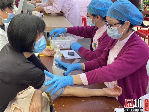 羅湖中醫院外科黨支部宣傳員喻意美介紹,此次義診,羅湖中醫院共挑選了20多名醫護人員參加,包括外科、泌尿科、肛腸科、兒科、婦科等,為老百姓提供多樣的免費的中醫治療項目。“我們這一次除了醫生探診之外,也重點也推廣醫院的兩癌篩查,傳播健康知識和中醫保健,讓更多的人去了解兩癌,早發現、早診斷、早治療,讓大家都有養生保健的意識和概念。”羅湖中醫院外科病區主管護師李快艷在接受采訪時說道。
