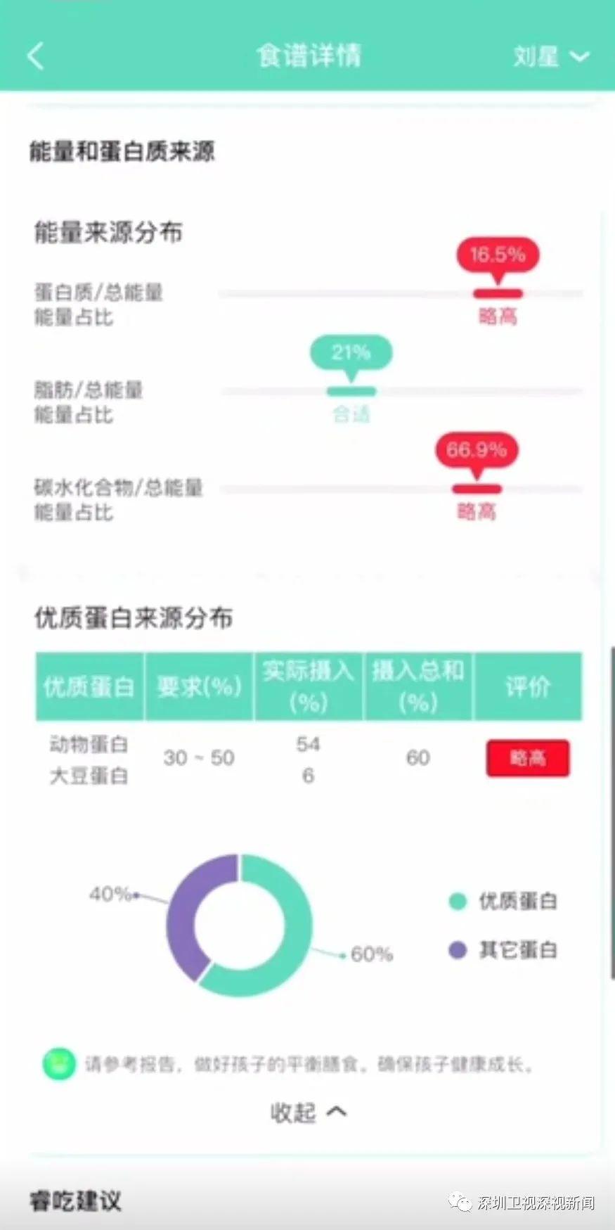 此外,家長也能通過系統,查看孩子在校用餐食譜及營養素分析的情況,還能獲取家庭平衡膳食配餐的指導。