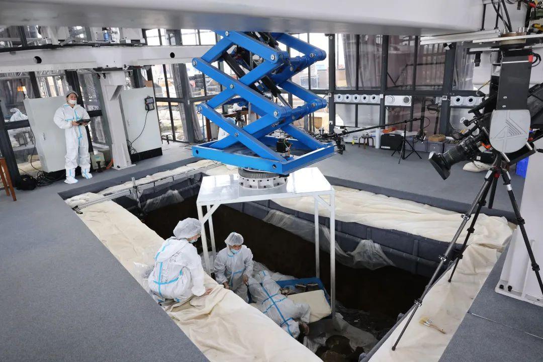 記者看到,在考古發(fā)掘現(xiàn)場設(shè)有考古實驗室,此舉屬于首創(chuàng),實現(xiàn)考古出土文物與文物保護無縫對接。
