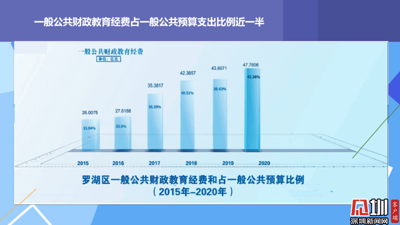 據了解,2020年,羅湖區一般公共預算教育經費支出達到47.78億元,占全區一般公共財政預算支出的比例達到了42.36%,教育經費的比例接近一半。羅湖不斷加大投入,努力提升學位供給,是為辦好老百姓家門口每一所學校。