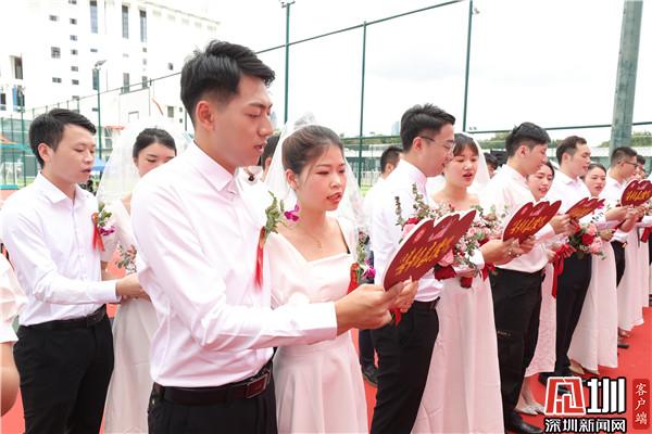 新郎身穿白襯衣,新娘身著潔白婚紗,他們十指緊扣,笑容甜蜜,在眾人的見(jiàn)證下交宣讀誓言、深情擁吻,許下一生愛(ài)的承諾。羅湖區(qū)副區(qū)長(zhǎng)馮健和羅湖區(qū)民政局局長(zhǎng)楊文秀作為特邀頒證師,分別為20對(duì)新人頒發(fā)結(jié)婚證書(shū)并送上誠(chéng)摯的祝福,新人們的歡聲笑語(yǔ)充滿了婚姻登記處的每個(gè)角落,處處洋溢著幸福與喜悅。通過(guò)集體頒證莊嚴(yán)而神圣的儀式感,向新人們強(qiáng)調(diào)法律的嚴(yán)肅性和婚姻的莊嚴(yán)性,讓他們銘記婚姻家庭蘊(yùn)含的責(zé)任與擔(dān)當(dāng),同時(shí)倡導(dǎo)廣大市民樹(shù)立“重登記、強(qiáng)責(zé)任、崇節(jié)儉”的婚俗新風(fēng)意識(shí),形成婚事新辦、簡(jiǎn)辦的文明新風(fēng)尚。