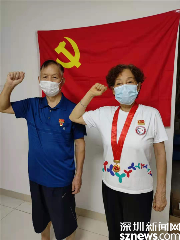 劉喜蘭是長嶺社區惠名花園的一位高達71歲的老黨員,“聽黨話、跟黨走”是她畢生的追求。7月1日這天,她收到黨組織頒發的“光榮在黨50年”紀念章,她已經入黨52周年了。她的老伴龔訓虎及大兒子龔競也是黨員,龔訓虎大爺也已經75歲高齡了,入黨接近50年。退休前,她和老伴都是光榮的人民教師,一生在湖南益陽教書育人,為社會培養了很多棟梁之才,2007年退休后,她和老伴來到深圳,繼續發揮余熱,積極參與社區義工活動。