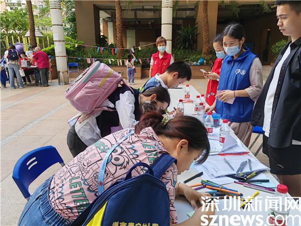 活動吸引了小區許多居民群眾熱情參與,各項目點在工作人員和義工的引導下都有秩序地排起隊伍參加游戲環節。在“黨史知識化身謎語”區,只見顏色各異的謎語條迎風飄揚著,讓人忍不住好奇停下腳步,紛紛對著謎語認真地思考起來,確認好答案后再將謎語條取下,到工作人員處核對獲取小印章。