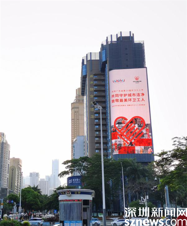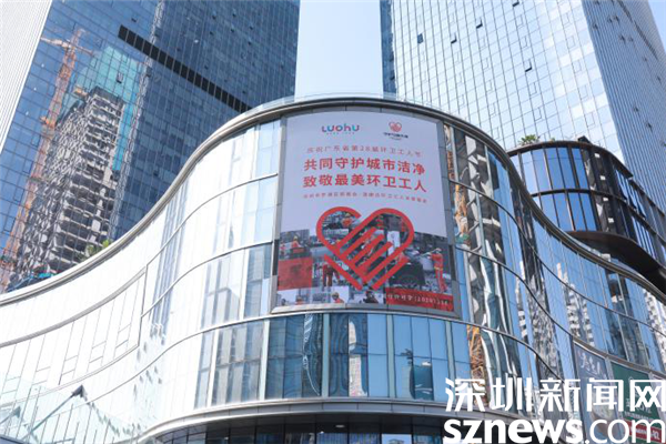(羅湖地標性建筑為環衛工人亮燈)
