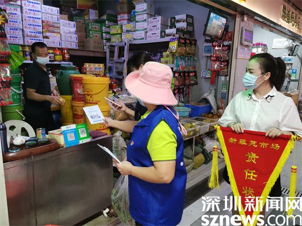 緊接著,東曉街道領導為4名新翠苑市場“治理小縱隊”隊長頒發“片區包干責任狀”,各“小縱隊”分頭開展“行走街市”“文明創建”和“門前三包”行動。值得一提的是,蘭花社區黨委將新翠苑市場劃分為4個包干片區,緊扣黨建引領基層治理主弦,組建與包干片區相對應的“治理小縱隊”。每個縱隊以社區工作站、新翠苑市場公司、市監所及消防站多方責任主體的黨員為核心,“銀發”志愿者、清潔工、市場商戶等多元主體共同組成,接受社區黨委的統一調度,同時每個縱隊統籌承擔所屬片區環境衛生、安全巡查、創文迎檢、食品安全等多項職能,實現“多能合一,一隊多能”力量整合,通過頒發責任狀的形式進一步強化大家在街市治理中的先鋒意識、主人翁意識和責任意識,使“治理小縱隊”成為蘭花社區黨委黨建引領基層精細化治理的“繡花針”。