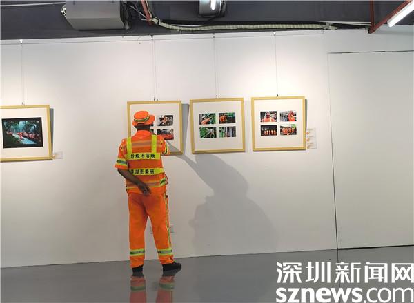 在羅湖美術館開展的第一天,王林泉就特意前去觀展,他是這次入展攝影類作品的作者之一,在與工作人員分享他攝影的作品《平凡的“戰疫”英雄》時還十分感慨:“這組圖是2020年2月份拍攝的,當時新冠疫情十分嚴峻,拍攝時我問其中一名環衛工人怕不怕?他說不怕是假的,但這些活兒也必須有人做。令我印象十分深刻。”
