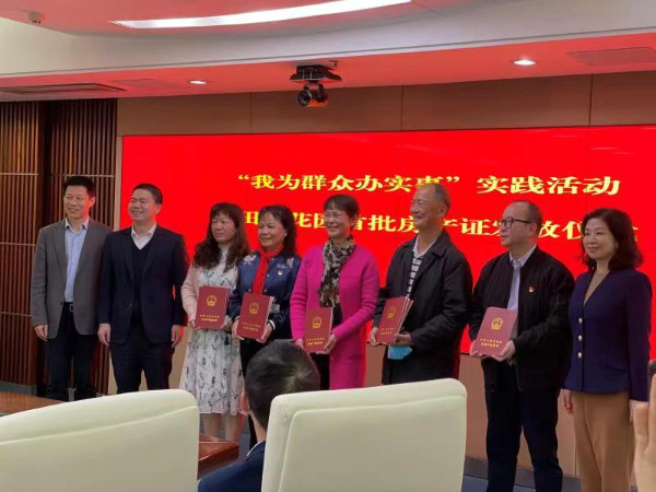 經過5個多月的奮戰,三大難題全部得到破解,居民辦理房產證的“路”被打通。12月10日完成田貝花園土地使用權證注銷抵押登記、房屋初始登記,成功辦理首批12本房產證并完成抵押登記。