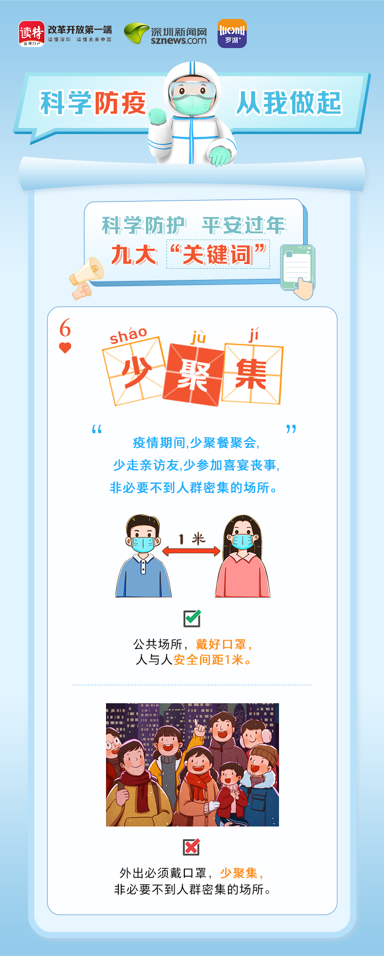 為更好地保護自己和他人的健康,度過一個祥和平安的春節(jié),請查收《科學防護平安過年九大“關(guān)鍵詞”》。在這場沒有硝煙的戰(zhàn)斗中,公安干警、醫(yī)護人員、社區(qū)工作者、志愿者始終堅守在一線,齊心協(xié)力、眾志成城抗擊疫情。讓我們攜手并進,共同抗疫,采用科學有效的方式做好自身防護,不僅對自己負責,更是對家人負責,對社會負責。