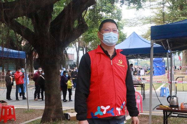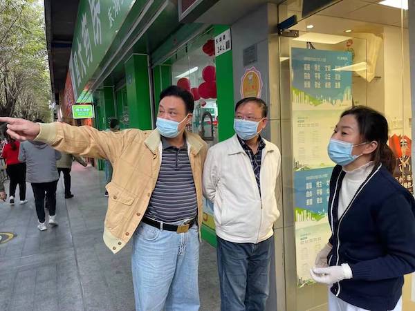 隨后,文促會一行來到了東湖街道大望社區。在社區核酸檢測現場,大望社區黨委書記高桂秀正在指揮現場工作;大望實業公司董事長何雨聰和大望社區副書記李雪康兩人都面帶倦容,明顯近期睡眠嚴重不足。據了解,高桂秀近期一直綁著護腰墊片,帶病堅持抗疫。