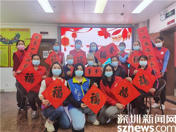 讀特客戶端·深圳新聞網2022年1月26日訊(記者 郭含笑 通訊員 李珍鳳)“無聯不成春,有聯春更濃”。春節臨近,為弘揚和傳承中華優秀傳統文化,1月26日,深圳市羅湖區清水河街道梅園社區黨委、深圳市東西方社工服務社駐梅園社區黨群服務中心在梅園社區新時代文明實踐站開展了送春聯活動,邀請社區4位書法愛好者現場為居民寫春聯、送祝福。