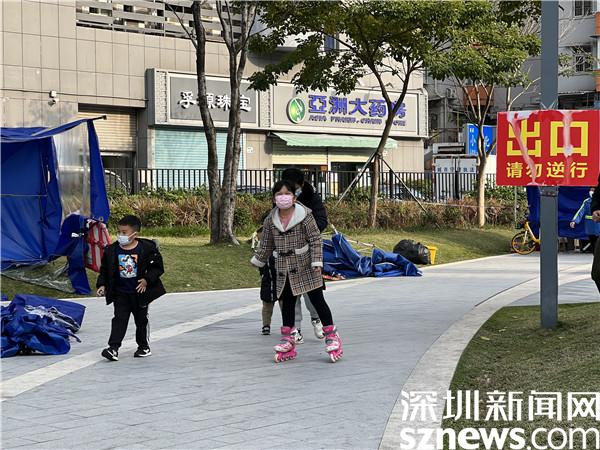 不少孩子還在社區公園里玩耍,來不及脫下輪滑鞋,就先去做了核酸檢測。