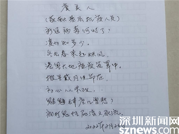 老黨員張端良寫(xiě)詩(shī)詞致敬抗疫人員