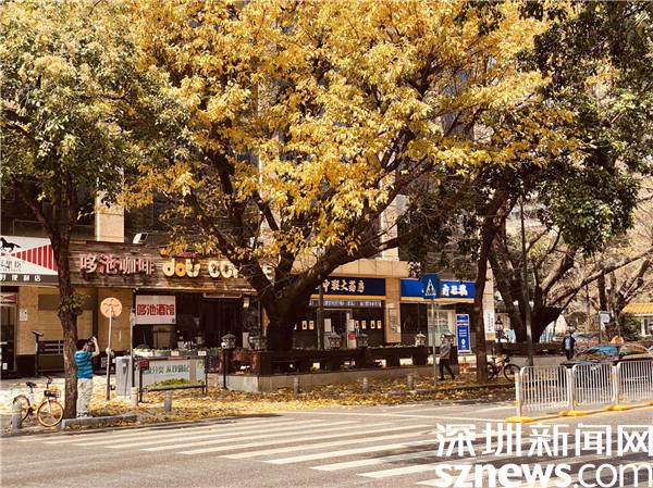 羅湖區美術館門前,樹葉正飄落,行人三三倆倆,頗有“半城春色半城秋”之感。