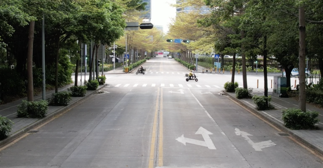 再去附近的車公廟轉轉,繁華的商業氛圍與市井的生活氣息都悄然藏匿。人流稀少的街道,偶爾會有步履匆匆的外賣小哥,遠去的背影和疾馳的風,構成了此刻城市的煙火氣。