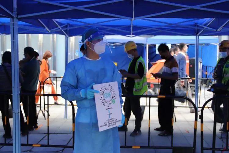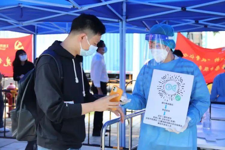 “之前一直在居住的小區做義工,在核酸檢測點做義工還是第一次,能為居民提供力所能及的服務,我覺得非常有意義。”在坪山創新廣場核酸檢測點,根之然生物科技有限公司創始人、香港青年趙曼弛一絲不茍做好掃碼、測溫工作。