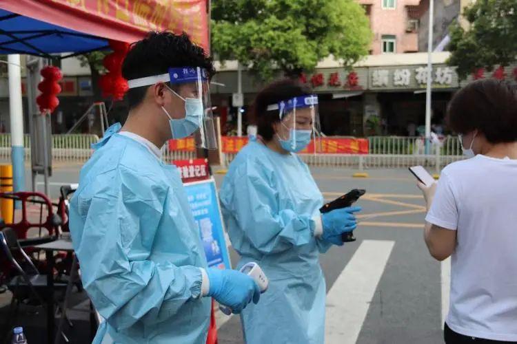 當天下午,坪山區深港澳青年創新創業基地義工服務隊繼續來到秀新社區核酸檢測點參加志愿服務。隨著氣溫升溫,穿著防護服也越來越容易熱,面屏上都是水汽,但是大家依然堅守在各自的崗位上。