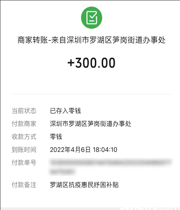 甘心是一名上班族,一家三口在筍崗村居住了5年多。今天下午,他在社區微信群看到了申領補貼小程序的鏈接,就點了進去。只要填姓名,選擇住在哪里,掃描人臉識別,就完成了申請,過程不到1分鐘。“我5點多申請的,6點多就拿到了補貼。這太快了!我還以為要審核好幾天呢!”6點多,他收到了一筆來自筍崗街道辦事處的轉賬。300元零錢直接存入了他的微信錢包。“太驚喜了,我還沒有想好怎么花。”甘心表示,以微信形式發放補助對居民消費非常便利,計劃把這筆錢用于家庭花銷。