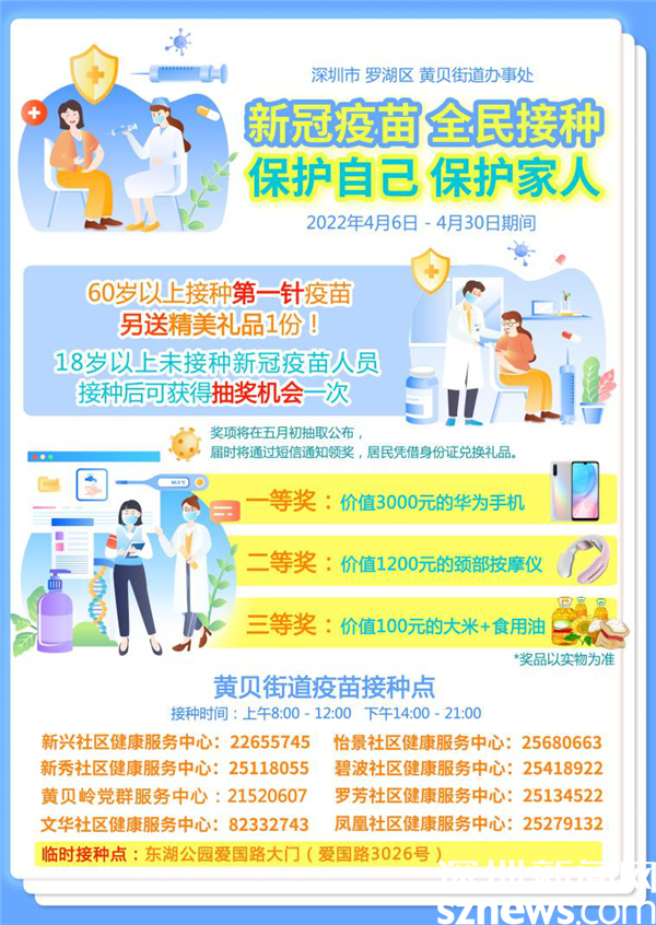 同時,積極動員轄區愛心企業參與支持,通過發放愛心物資、抽獎等方式提高居民接種積極性,推動疫苗接種擴面提速。據了解,為鼓勵轄區居民接種,該街道推出“凡18歲以上未接種疫苗的居民,到轄區內社康接種疫苗后,均可參與幸運抽獎一次(一等獎為價值3000元的華為手機1臺)”的獎勵措施,以此動員居民參與。