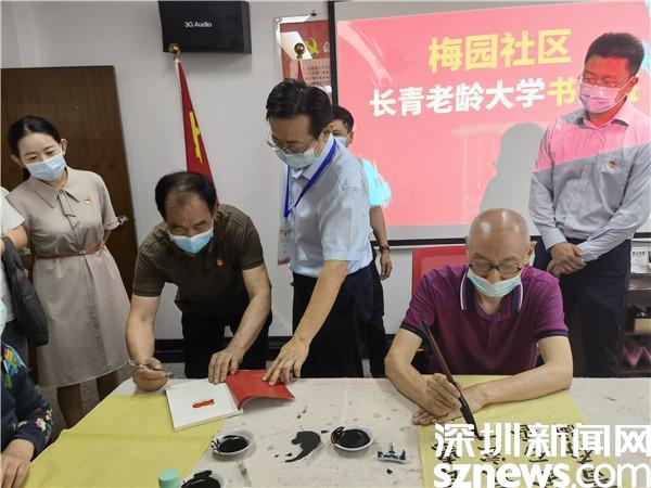 現(xiàn)場,還邀請了梅園社區(qū)長青老齡大學(xué)書法班鄒洪濤老師向大家講解,鄒洪濤既是書法班的老師,也是社區(qū)第十黨支部的支部書記,更是一名基建工程老兵。當(dāng)鄒洪濤介紹家喻戶曉的照片《升》的主人公正是他本人,更是讓王云虎對他豎起了大拇指。他激動地表示,鄒洪濤的紅嶺大廈建筑工地上被定格的這張“頂天立地”的照片,是基建工程兵傾力投身改革開放的縮影,展示了深圳經(jīng)濟(jì)特區(qū)初創(chuàng)時蒸蒸日上的發(fā)展勢頭,是深圳建設(shè)初期時代張力的見證。