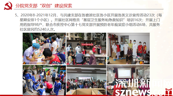 區中醫院康復分院黨支部以黨建引領“雙創”工作取得良好實效,與黃貝社區黨委的共建和交叉任職推動醫療資源和社區服務的資源共享,把“社區關愛服務”落到實處。通過黨組織聯動,增強了居民與醫護之間的溝通聯系,有力推動65歲老人體檢和疫苗接種,大大提升居民認可度、滿意度。康復分院黨支部與社區黨支部和黨員義工合作,為轄區內70歲以上生活不便孤寡老人提供全方位的關愛服務,開展上門訪視服務535人次;深入各小區開展各類義診宣傳、健康知識推廣活動等36場,惠及居民5000余人。