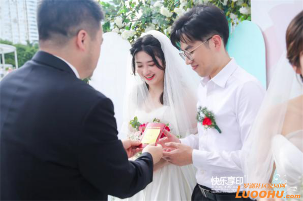 羅湖區委常委、宣傳部部長呂漫妮,羅湖區民政局局長楊文秀,羅湖區民政局副局長藍茜,2021年深圳市“最美家庭”的獲得者李道倫和王蓬勃夫婦,羅湖公益“紅娘”汪朝暉作為特邀頒證師,分別給9對新人頒證。