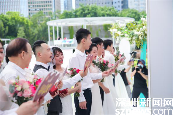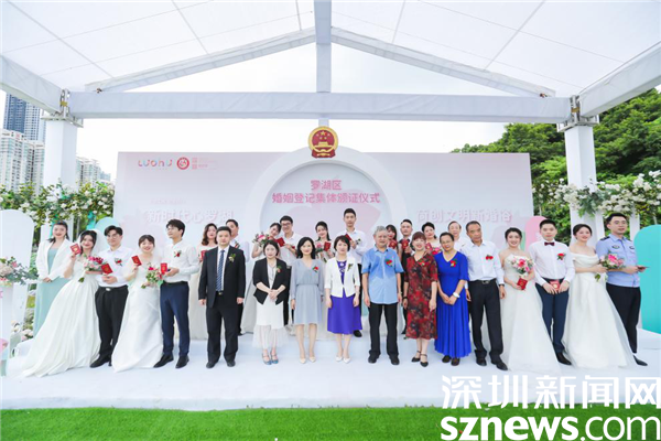 讀特客戶端·深圳新聞網2022年6月17日訊(記者 李慧 通訊員 楊嘉雯)6月中旬的洪湖公園,荷花盛開,17日早上,羅湖區民政局把婚姻登記頒證廳搬到這優美環境、文明的氛圍中,舉辦“新時代心羅湖,荷創文明新婚俗”婚禮登記集體頒證儀式?,F場以并蒂蓮為背景,以文明、時尚、簡約作為主題元素,提倡“重登記、強責任、崇節儉”的文明新婚俗。