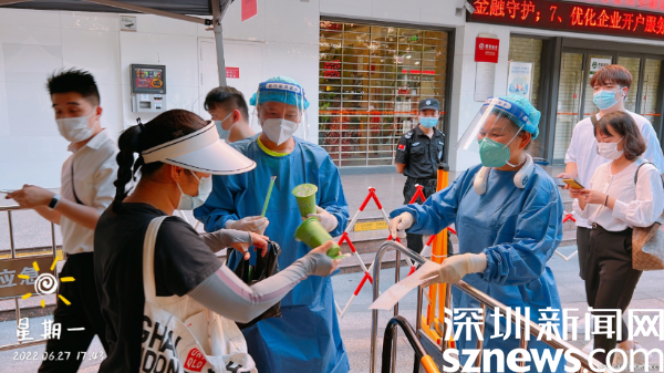 除了“人力”支援,“物力”支援也沒落下。考慮到大部分核酸檢測點的現場工作人員要在高溫下工作,南湖街道周邊商戶及居民自發送來米湯、甘蔗汁等防暑物資,為防疫一線工作人員“送清涼”。