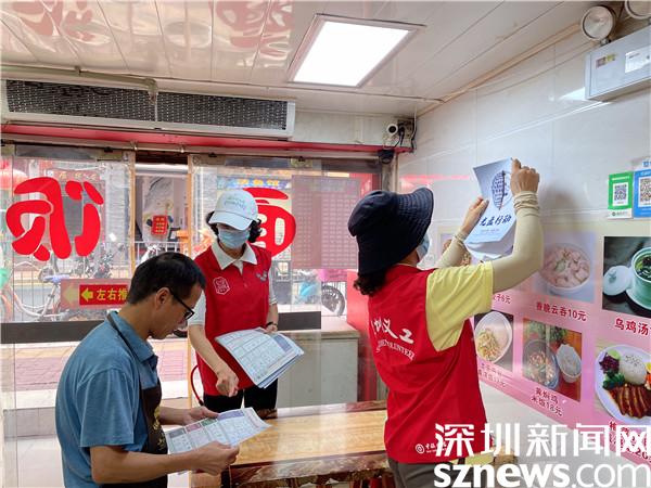 針對黃貝嶺村商鋪林立、餐飲企業較多的情況,活動當日,社區工作人員和黨員志愿者手拿垃圾分類宣傳資料分成兩個宣傳小分隊,進入黃貝嶺村,對沿街商鋪、餐飲門店張貼光盤行動海報及對過往的居民發放垃圾分類宣傳資料,零距離指導居民實施垃圾分類,并對村里電瓶車亂停放、亂擺賣等影響環境衛生的不文明行為進行宣傳整治,引導居民環境衛生從“整治”變“自治”,告別不文明行為。