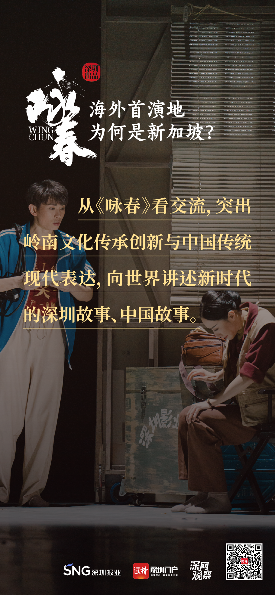 “新加坡與中國深圳血脈相連、文化相親,相信這一次的《詠春》能喚醒更多華人的文化基因!”深圳出品的原創舞劇《詠春》,從今年3月開啟全國首輪巡演以來,已經走遍20多個城市,巡演很快達100場,場場火爆,一票難求,成為國內歌舞劇市場的現象級佳作。據媒體報道,9月27日-30日,《詠春》受邀到新加坡濱海藝術中心連演4場,開啟海外演出。9月16日,新加坡《聯合早報》發表長文《中國舞劇<詠春>貫穿現代與傳統》稱:“這部舞劇不僅火遍神州,自從要在新加坡公演的消息傳出后,也成為獅城華人圈的熱門話題”。