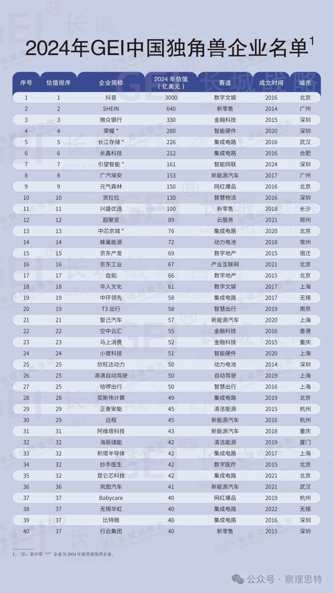 ▲《2024年GEI中國獨角獸企業名單》(部分)