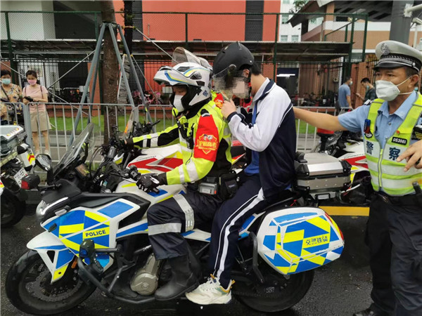 6月7日上午,深圳市第二實驗學校考場外的一名高考生向交警求助護送。羅湖交警獲悉該情況后,迅速啟動“綠色通道”護送。
