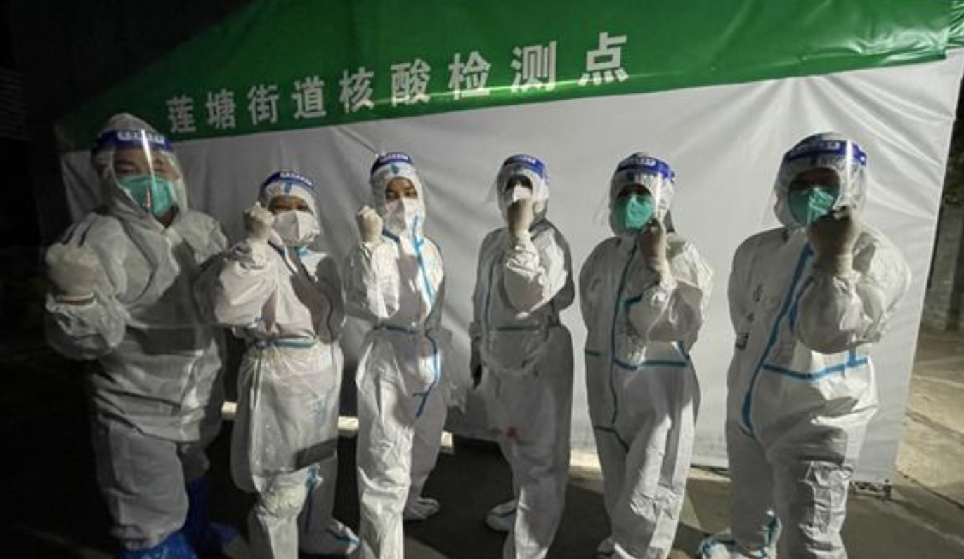 自深圳“0215”疫情突發以來,羅湖東門街道城東社區負責的湖貝社區公園臨時核酸點再次啟動。核酸點重啟的那天,雨嘩啦啦的下,負責人事安排、后勤保障的盧映均在工作群看到入口處的同事僅穿著雨衣服務居民的照片,舍不得讓站崗的同事長時間淋雨,恨不得自己去扛帳篷,奈何6個月身孕,只能安排現場的同事挪動帳篷,那帳篷沉得要四位男同志才扛得動。