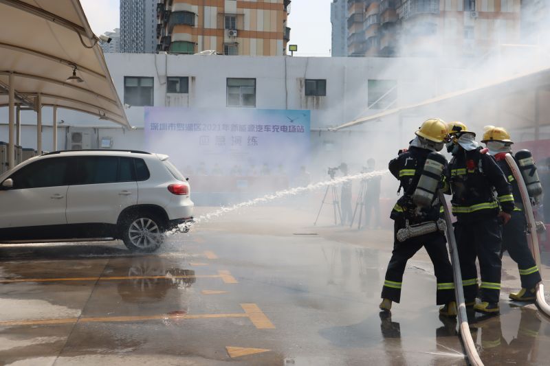 2021年9月15日上午,深圳市羅湖區發展和改革局在喜立快充充電站組織開展2021年新能源汽車充電場站應急演練,區應急管理局、東曉街道辦、羅湖區消防救援大隊等23個職能部門相關負責人和羅湖區新能源汽車充電樁運營企業負責人進行了參演和現場觀摩。