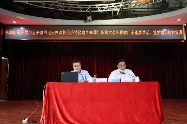 11月26日下午,深圳市羅湖區東湖街道舉行習近平總書記出席深圳經濟特區建立40周年慶祝大會和視察廣東重要講話、重要指示精神宣講報告會,活動特邀羅湖區委宣講團成員、區發展研究中心黨組書記、主任王西星作主題宣講。
