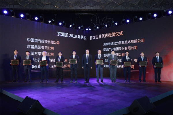 在10月22日舉行的羅湖區2020產業空間推介暨招商大會招商大會上,羅湖區委書記羅育德為羅湖區2019年納稅百強企業代表進行授牌,企業涉及金融業、批發業、零售業、公共事業、建筑裝飾業、黃金珠寶業、商務服務業、總部經濟、新興產業和交通運輸等。