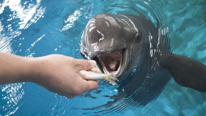 在中科院水生所武漢白鱀豚館里,生活著6頭長江江豚。 長江江豚是一種古老的水生哺乳動物,在地球生活已有2500萬年,被稱為長江生態的“活化石”,僅分布于長江中下游干流及與之相連的鄱陽湖、洞庭湖等水域。