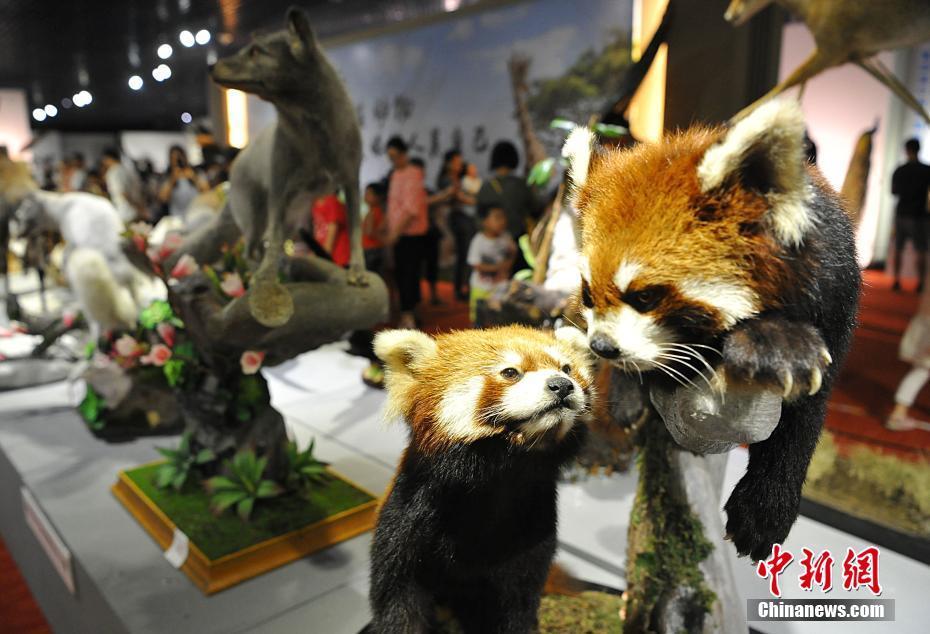 5月27日,各類飛禽走獸活靈活現(xiàn)地出現(xiàn)在民眾的眼前。正在福建博物院展出的第四屆中國動(dòng)物標(biāo)本大賽的257件惟妙惟肖的標(biāo)本作品集中對外開放,讓民眾如進(jìn)入“動(dòng)物世界”。本次大賽匯集了全國標(biāo)本制作企業(yè)、博物館、大專院校、研究所等60多家單位參加,標(biāo)本涵蓋哺乳類、鳥類、爬行類、兩棲類、魚類等動(dòng)物類群的皮張和骨骼標(biāo)本。主辦方希望通過標(biāo)本大賽,向公眾展現(xiàn)動(dòng)物世界的美麗,宣傳生物多樣性和生態(tài)文明,借鑒吸收國際標(biāo)本制作先進(jìn)經(jīng)驗(yàn),提高中國野生動(dòng)植物標(biāo)本制作的整體水平。圖為大賽參賽作品小熊貓。中新社記者 張斌 攝