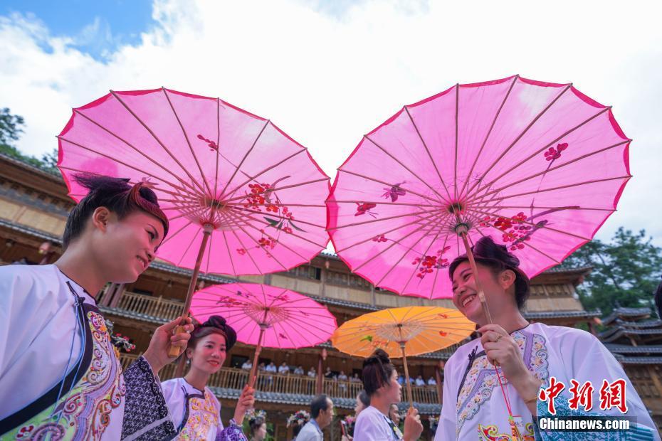 7月14日,貴州榕江,相思節上身著盛裝的侗族婦女。當日,貴州省榕江縣樂里七十二寨舉行“六月六”相思節,當地少數民族身著節日的盛裝,舉行盛裝巡游、吹蘆笙、踩歌堂等民俗活動歡度節日。中新社記者賀俊怡 攝