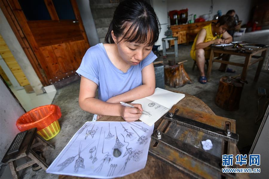 龍懂陽的弟弟龍?zhí)栆彩倾y飾工藝傳人。和哥哥不同,弟弟主打的是銀飾文化體驗(yàn)游,用自家傳統(tǒng)苗寨開設(shè)民宿,游客在此居住的同時(shí),還能學(xué)習(xí)體驗(yàn)銀飾品制作。每年暑期一到,家長孩子絡(luò)繹不絕。新客源、新銷路、新模式帶動雷山縣銀飾業(yè)不斷發(fā)展壯大,成為脫貧攻堅(jiān)的重要產(chǎn)業(yè)。2017年,雷山縣控拜、麻料、烏高三個(gè)村銀飾品及相關(guān)產(chǎn)業(yè)銷售額超過1.5億元,吸引很多外出打工的年輕人回家創(chuàng)業(yè)。苗寨鍛銀聲在綠水青山間響遍千戶,也漸漸走出大山,聲名遠(yuǎn)播。新華社記者 李芒茫 攝
