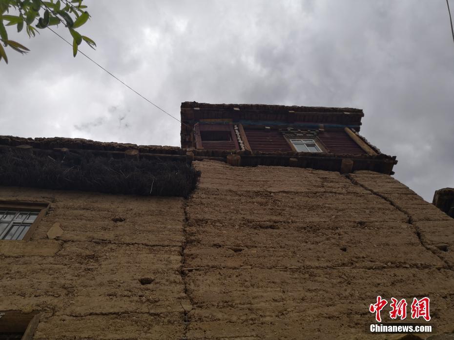 該建筑外墻為土質(zhì)圍墻,每層墻壁四周都開有數(shù)個10-15厘米大小的圓形或三角形小洞,既可向外瞭望,又可作射擊孔。中新網(wǎng)記者吉祥 攝