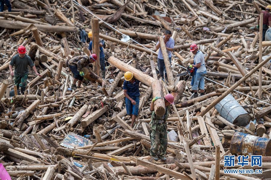 9月4日,當地群眾在麻栗坡縣猛硐瑤族鄉壩子橋區域清理河道內堆積的木材。當日,云南麻栗坡山洪泥石流災害救援工作繼續開展,救援人員在現場全力搜尋失蹤人員。新華社發方超 攝 圖片來源:新華網